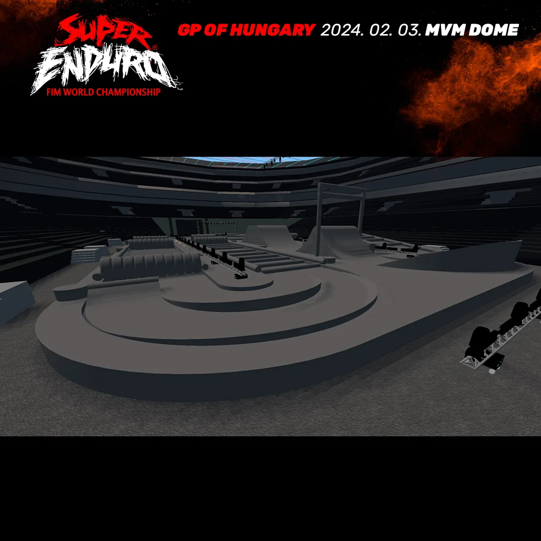 Látványos akcióra számíthat a közönség a 2024. február 3-án az MVM Dome-ban zajló Superenduro GP of Hungary alkalmával. A régió legnagyobb fedett rendezvénytermében föld, faanyag, kő, csövek, traktorgumik és idén először homok felhasználásával épülő pálya látványtervét a versenyt rendező TRP Hungary a héten hozta nyilvánosságra, és a tervek a sportág kiválóságainak elismerését is elnyerték.